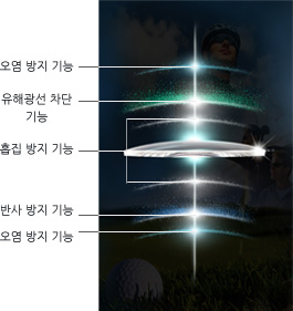 MAXtremer 코팅패키지 MAXtremer 코팅패키지는 다음과 같은 구성요소로 이루어져 있습니다. MAXtremer 코팅패키지는 경도, 내마모성, 반사방지, 수분 및 기름때 방지 등의 방지기능과 고농도의 다층막 레이져 특수코팅으로 이루어진 미러 코팅과의 조합으로 착용자에게 높은 가치를 제공합니다. 경도 내마모성 반사방지 수분 및기름때 방지 렌즈의 차례대로 오염방지,유해광선 차단기능,흠집방지 기능,반사 방지 기능,오염 방지 기능 코딩패키지를 이미지를 보여주고있습니다.
