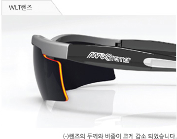 MAXtremer RX 렌즈는 WLT 프리폼 테크놀로지로 시력교정이 필요한 선글라스 착용자들을 위한 도수 일체형 선글라스를 탄생시켰습니다. WLT 프리폼 테크놀로지는 첨단 공법과 과학적인 생산시스템을 통해 다양한 활동에서 주변 시계를 확보하고, 더욱 선명한 시야를 제공합니다. 또한, 하이커브 프레임에서 나타날 수 있는 시야의 왜곡현상을 보완하고, 렌즈 두께를 감소시켜 편안한 착용감을 유지할 수 있습니다.